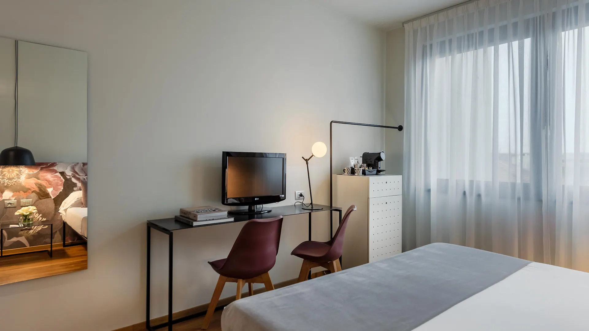 Controle de temperatura, juntamente com mini frigobar e máquinas de café/chá, proporcionam conveniência no sala do Boutique Hotel Touring de Verona. Mobilados com escrivaninha, eles também têm janelas a prova de som. Os casas de banho privadas estão equipados com chuveiro de corrediça e banheira de spa, junto com roupões e pantufas.
